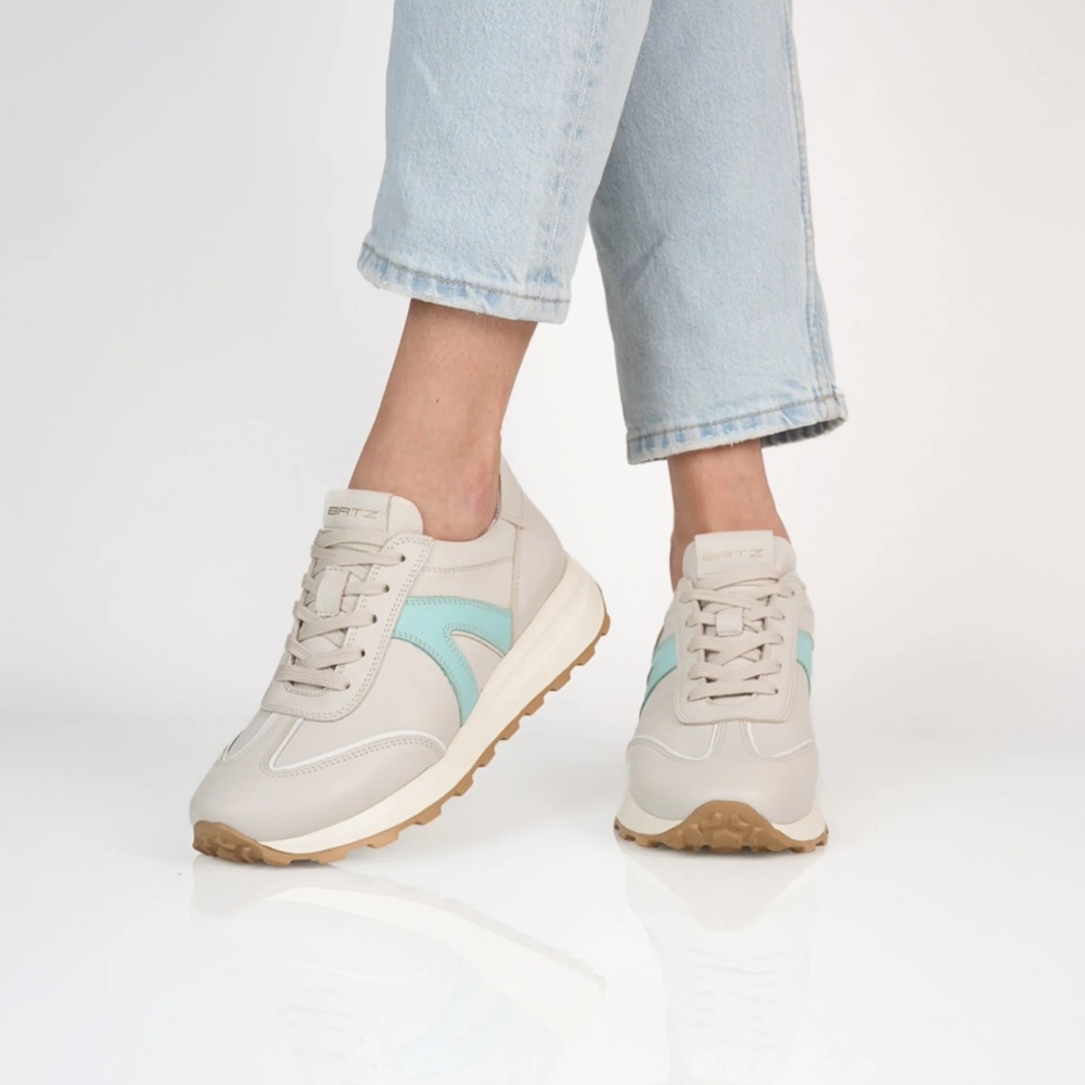 A Leyla sneaker azonnal elbűvöl – valódi, prémium bőr eleganciájával, mely minden részletében a minőséget hirdeti. Az ízlésesen megtervezett, könnyed cipő oldalán megjelenő üde, világoskék akcentus a tavasz frissességét idézi. A cserélhető talpbetét lehetőséget nyújt, hogy a kényelmet igazán különlegessé varázsold – egyedi talpbetét választásával.