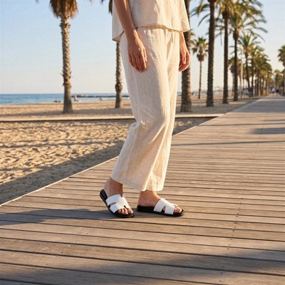 A fehér–fekete színösszeállítás igazi alapdarabbá teszi: könnyen kombinálható sportosabb és elegánsabb szettekhez is. Gyorsan felkapható, mégis csinos lábbeli: jól mutat fehér vászonnadrággal, fekete shorttal, farmerrel, oversized ingruhával vagy egyszínű nyári ruhákkal is.