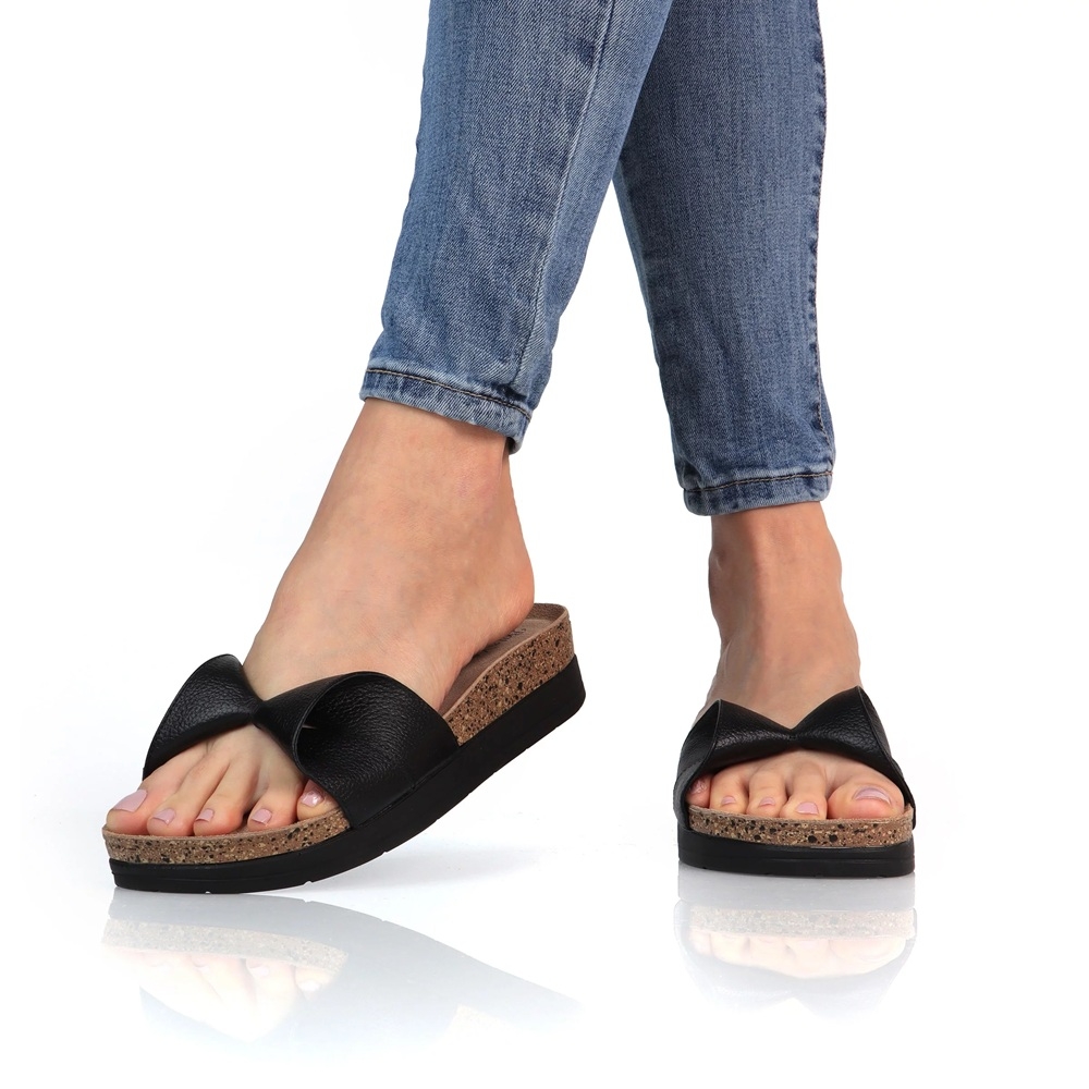 A Pretty Geisha Black papucs egy újragondolt modell, amely a letisztult fekete eleganciáját ötvözi a prémium kényelemmel, s mindezt emelt talpon, mely modern megjelenést és extra stabilitást biztosít. A talp alsó rétege mélyfekete, felső része pedig natúr parafa hatású, így természetes és kifinomult összhatást teremt.