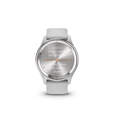 TÖKÉLETES MEGJELENÉS EGÉSZ NAP! A vívomove Trend hibrid okosóra klasszikus analóg stílust és alapvető okosfunkciókat kínál, mint az okostelefonról érkező értesítések, vagy a Garmin Pay™ érintésmentes fizetés.