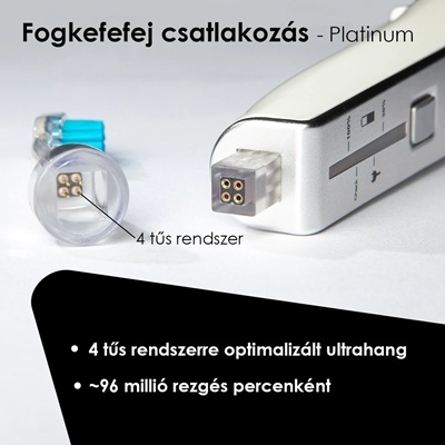- Technológia: 100% ultrahangos fogtisztítás, minimális mechanikus mozgással.
